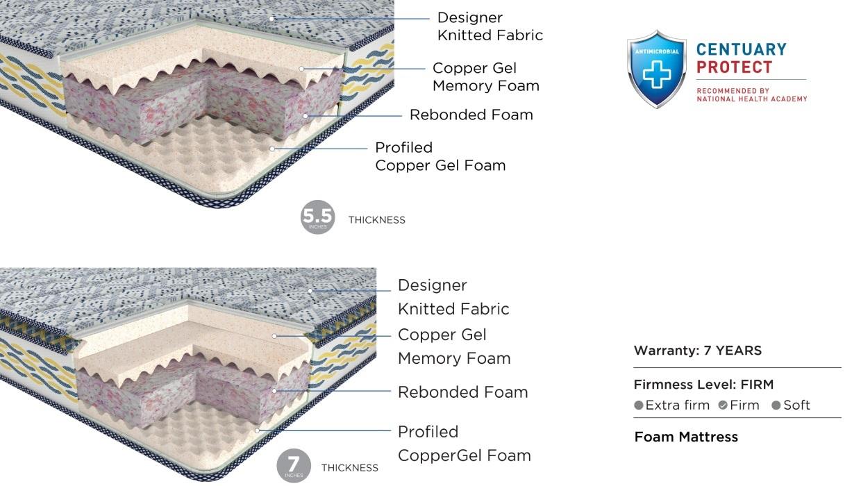 Centuary Pixel – Copper Gel Memory Foam MattressFree : "CUSENSE” PILLOW“