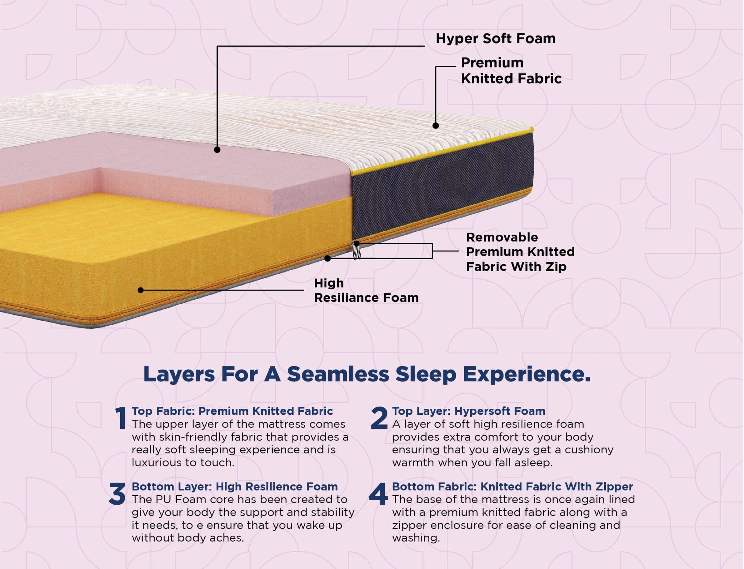 High Resilience Foam, Hyper soft, Premium Knitted Fabric