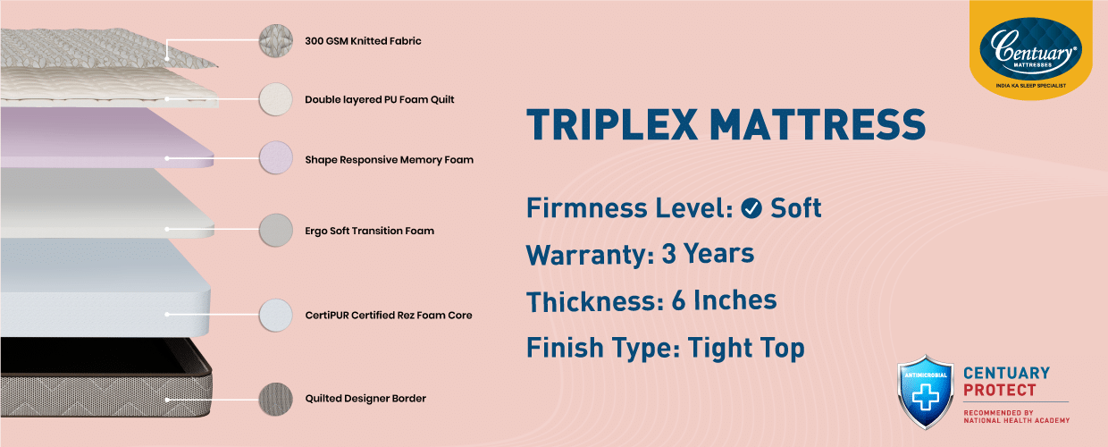 Crafted with precision and expertise, the Triplex mattress features an innovative design that seamlessly combines three layers of advanced materials to provide the ultimate sleep solution.